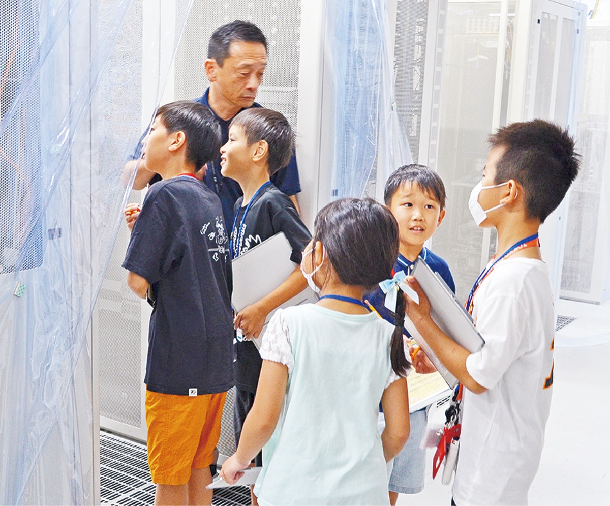 IT企業の株式会社アイネット=西区=が8月23日、戸塚区内にある自社のデータセンターで、小学生の親子向け見学会を初めて開催した。子どもたちにITに興味を持ってもらおうと行われたもので、親子11組27人が参加した。