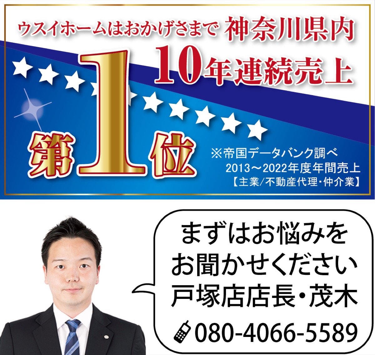 同社は湘南・横浜・横須賀エリアに38拠点を展開。県内の不動産代理・仲介業者の売上ランキング(帝国データバンク調べ)で、10年連続ナンバー1の実績があり、安心して任せられる。