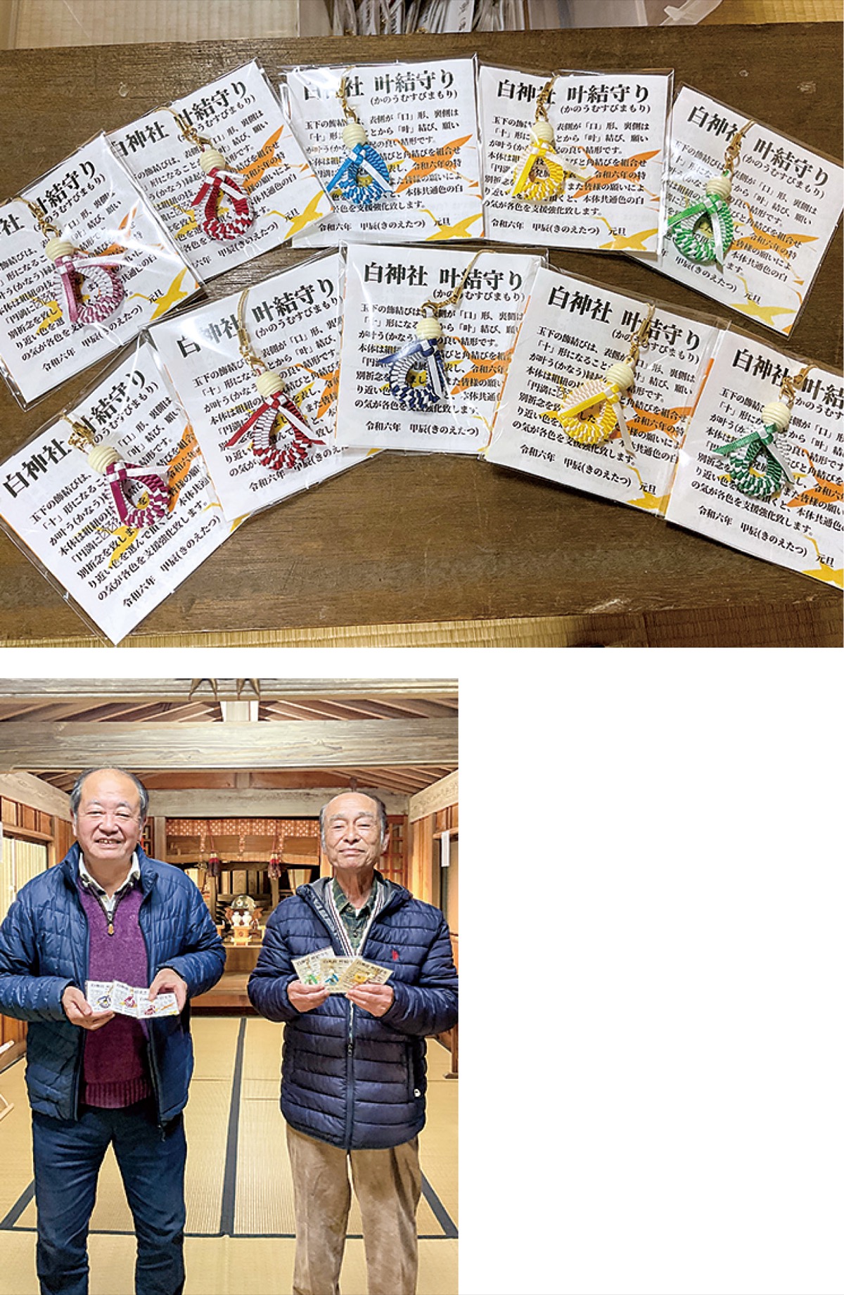 白神社(名瀬町1774)で授与するお守りがこのほど、一新された。参詣者の少ない同神社を「もっと知ってほしい」と地域住民が新年に向けて企画したもの。