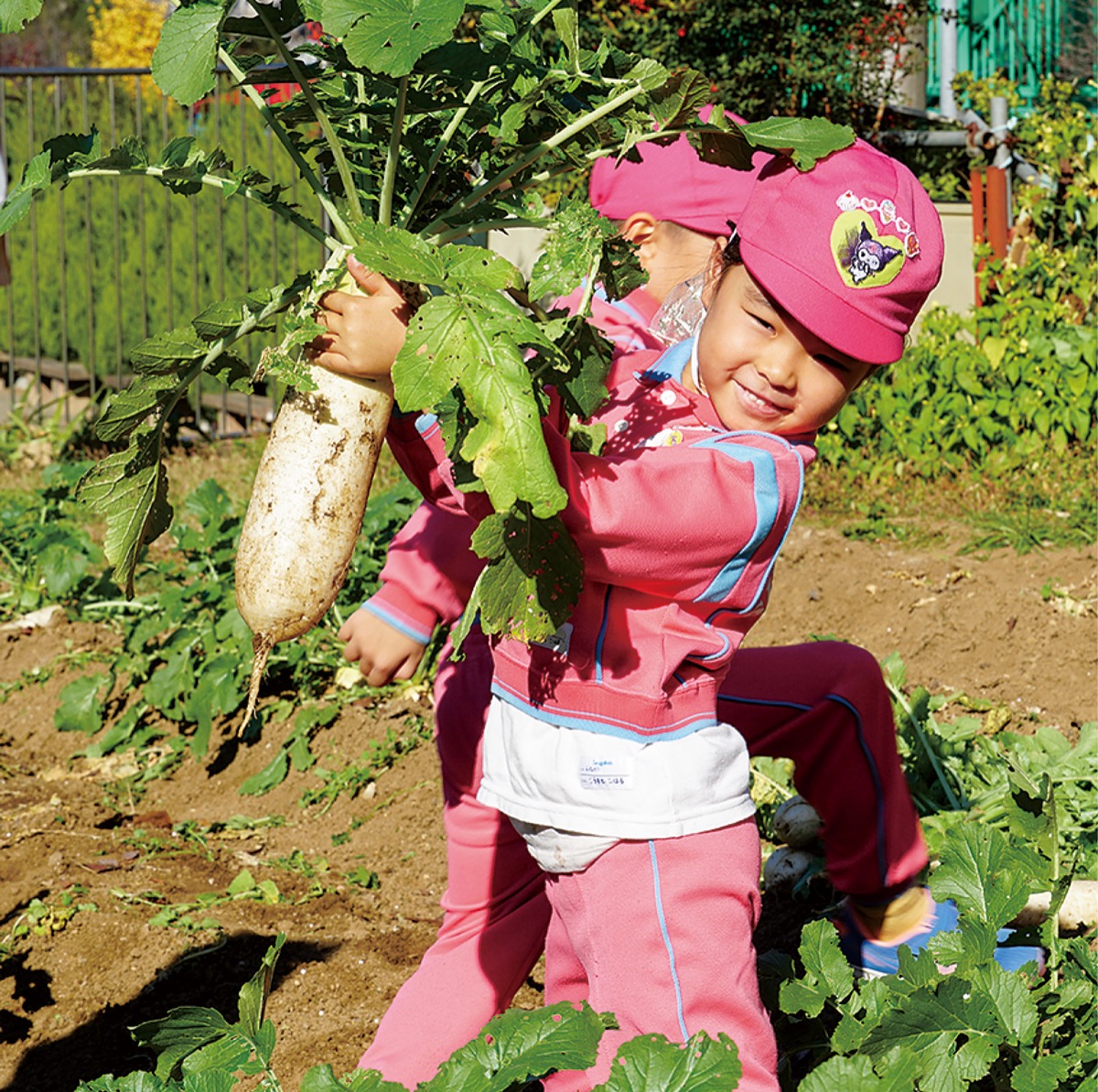 上倉田町にある、しらぎく幼稚園(小田京子園長)は12月7日と8日、園内の畑で大根掘りを行った。