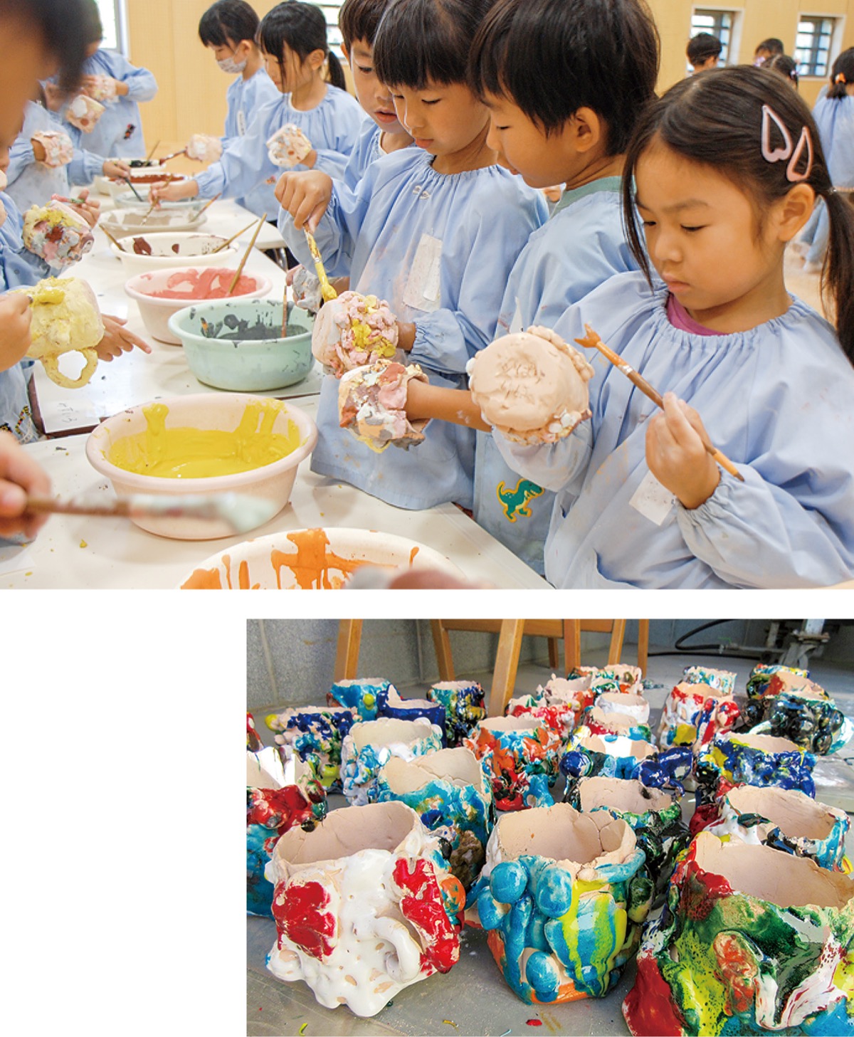 園児たちは、思い思いに形作った粘土を乾燥させ、釉薬を塗って絵付けを行い、最後に本焼きをするまで約1カ月かけて作品を完成させた。