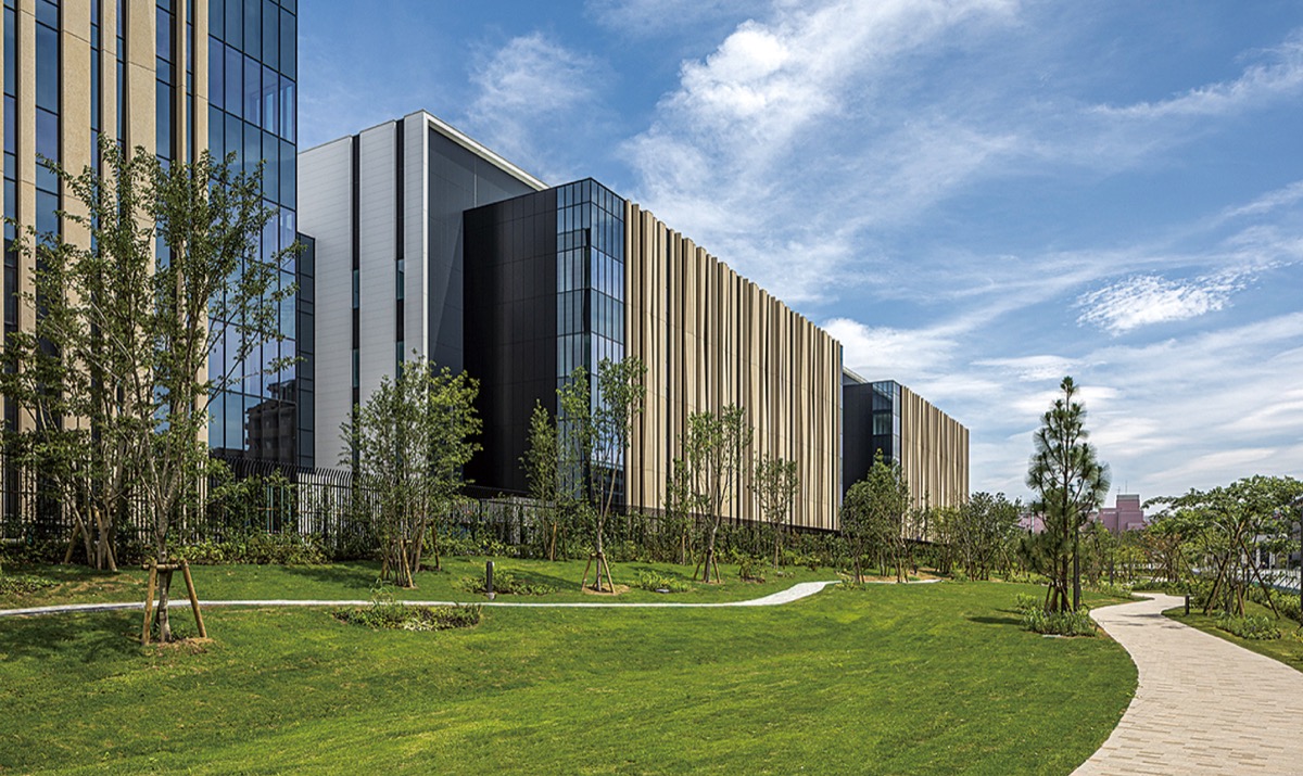 中外製薬(株)(奥田修代表取締役社長/本社・東京都中央区)が2023年4月に全面稼働させた「中外ライフサイエンスパーク横浜」(西側戸塚町・東側上倉田町)。革新的な新薬を戸塚から世界へ届けるため、日々研究に力を尽くしている。一方で周辺地域の住民らが利用できる緑道やグラウンドを設置。"地域との共生"を重視した創薬活動を行っている。