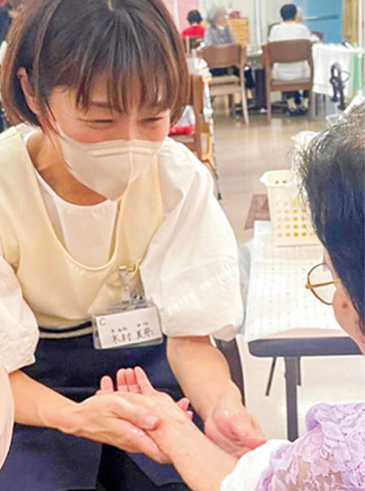 木村美奈さんは、介護美容を行う「ケアビューティスト」として区内で活動中。オイルを使ったハンド・フットトリートメントや、明るい表情を引き出すメイクアップなどで、身体的・精神的な健康を促進する。