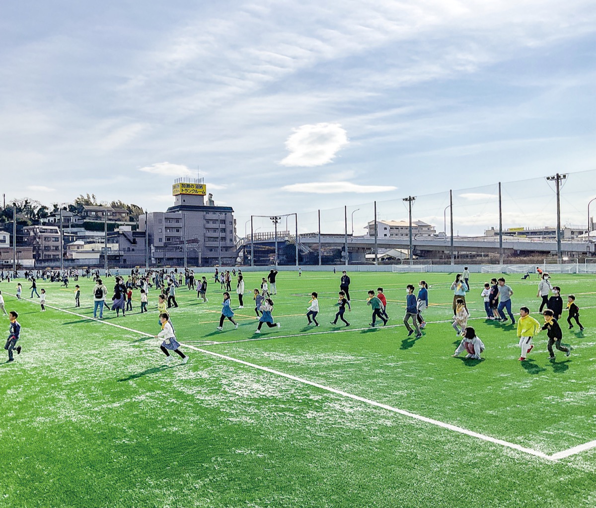 大谷校長は「子どもたちが芝の上でのびのびと運動できる場所はほかにない。本当にありがたいこと」と感謝を述べた。同所の職員は「弊社グラウンドを戸塚小の皆さんに活用していただき、楽しんでもらいたい」と話した。今後、同所と協議を重ね、体育の授業以外での利用も検討していくという。