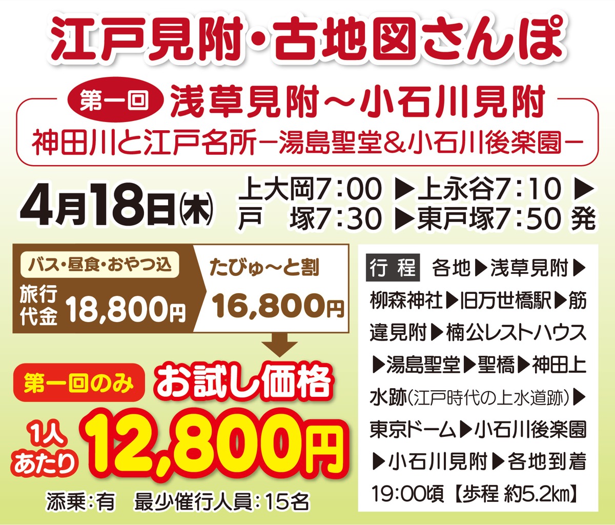 お得な初回は浅草〜小石川の見附辿る