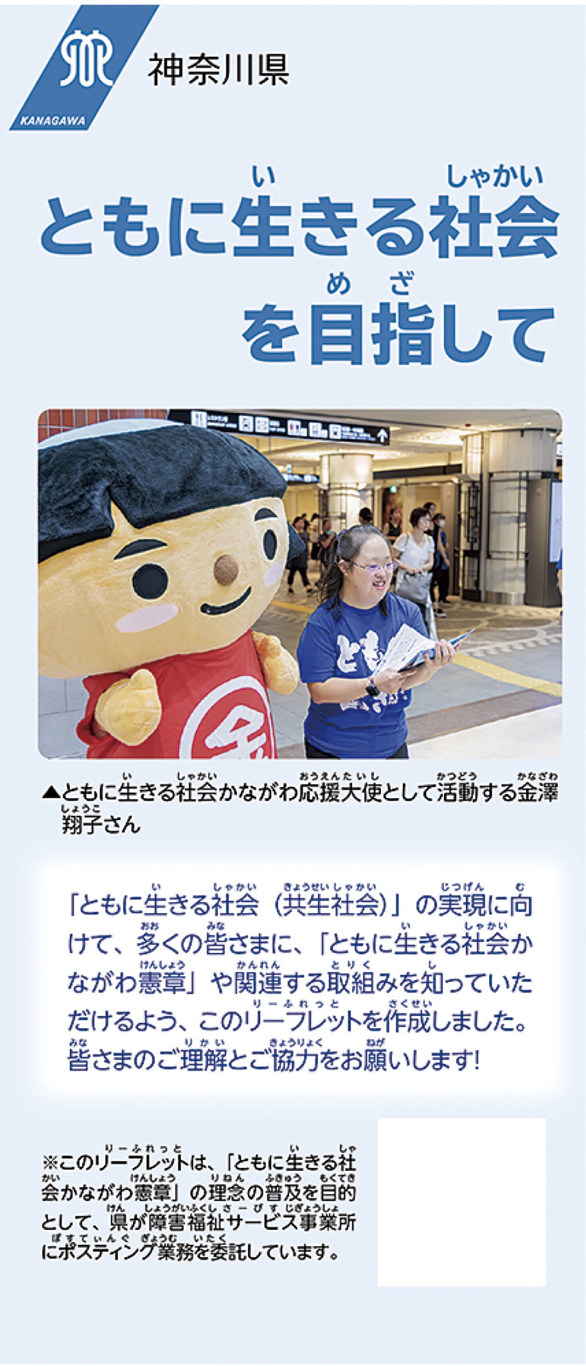 神奈川県福祉子どもみらい局では、「ともに生きる社会かながわ憲章」や関連する県の取組等をまとめたリーフレット(通称『ともいきリーフレット』)を作成し、県内で広くポスティング(各戸配布)を行っている。