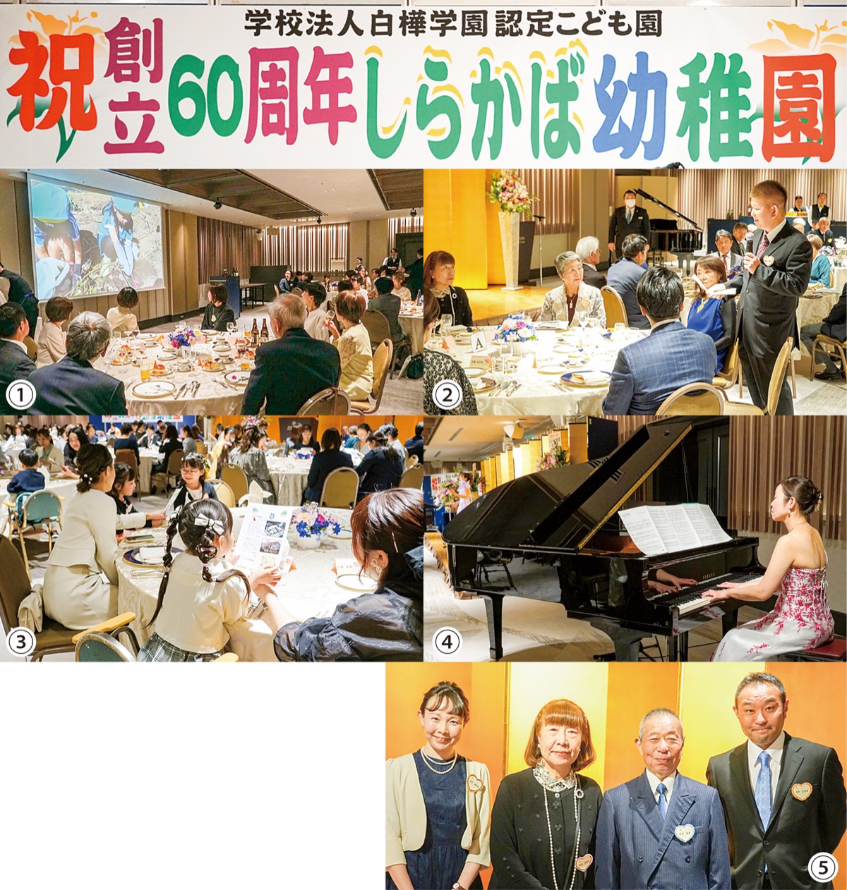 戸塚区矢部町の認定こども園しらかば幼稚園(成宮知恵子理事長)が3月3日、横浜ベイシェラトンホテル&タワーズで「創立60周年記念祝賀会」を開催した。会場には卒園生の保護者や元職員、園ゆかりの来賓など総勢130人超が一堂に会し、開園60年の節目を祝った。
