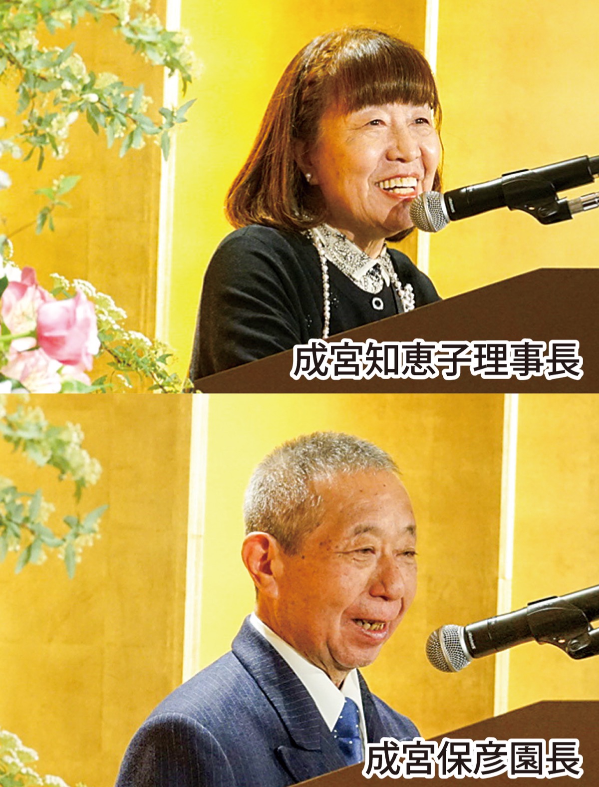 祝賀会には歴代の保護者会役員や元職員の他、在園の役員は園児と共に参加した。年中の娘を通わせる保護者会会長の花輪愛さんは「手作り品の販売など大変なこともあったが、役員が仲良くて子どもの様子を身近に感じられ楽しめた」と振り返る。成宮知恵子理事長は「保護者の皆さんや職員に支えられここまで来れた。孫の様にかわいい園児と接する度、この仕事を続けてよかったと思う」と謝意を述べた。
