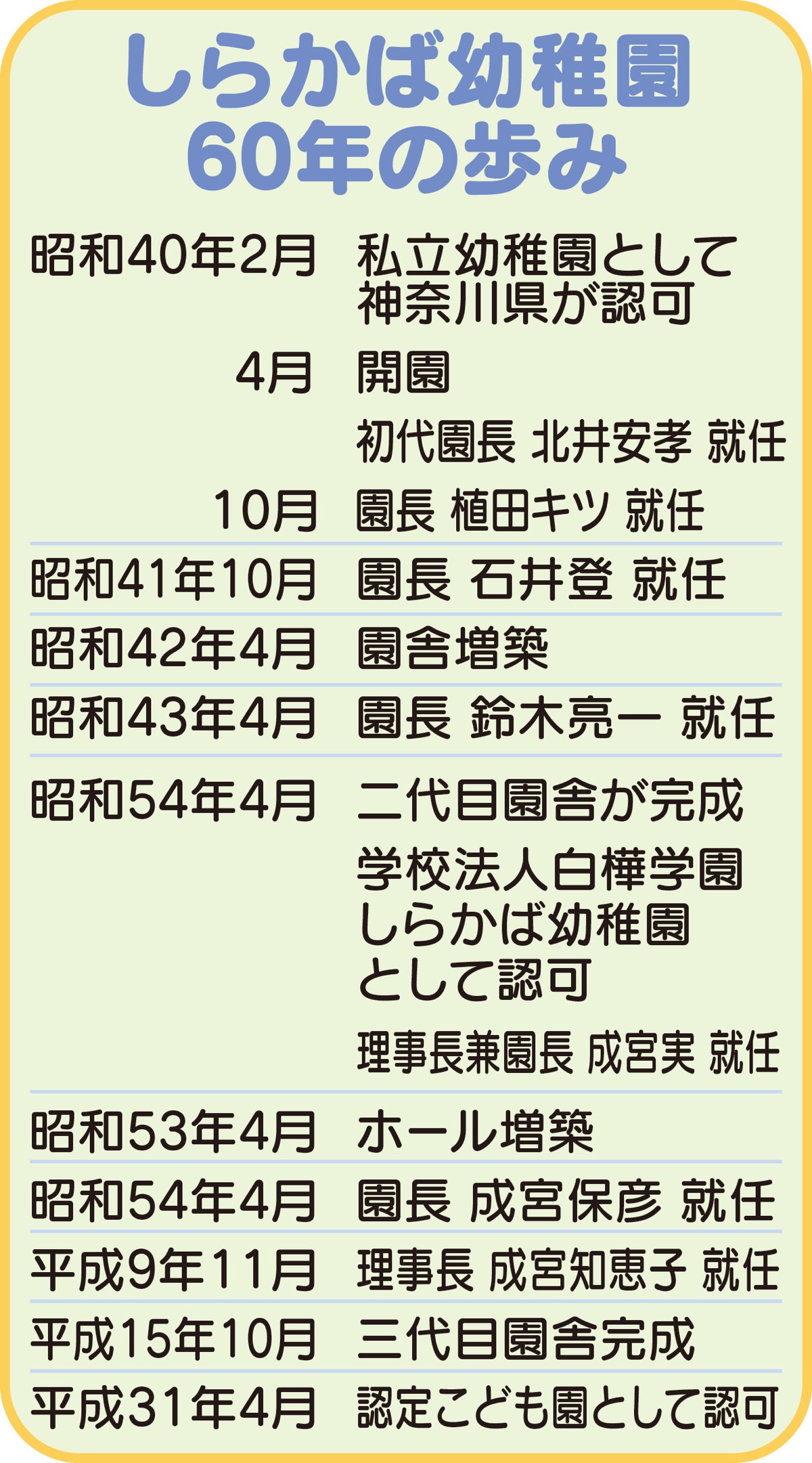 開園当初は、初代園長の急逝など苦労が絶えなかったというが、「健康で明るい子を育てる」という教育目標のもと、四季を通じた農作物の収穫体験、夏祭りやハロウィンなどの季節行事、英語や体育の専門講師による指導も取り入れ、着実に園生活を充実してきた。あす3月15日の卒園式で累計6103人の卒園生を送り出すことになる。