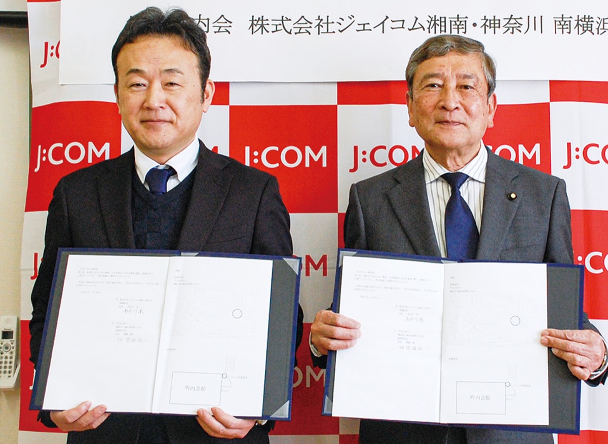 柏尾町内会(齋藤純一会長)と(株)ジェイコム湘南・神奈川 南横浜局は3月29日「地域安全に関する協定」に調印した。