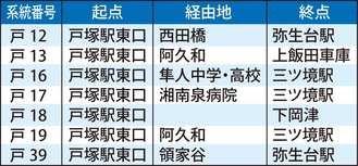 経路変更を受け「矢部町」「戸塚駅東口」には停車しなくなった。運行本数は変わらないが、走行距離が若干長くなったことから、発着の時刻が数分間遅くなっている。区担当者によると、「バス利用者から『生活の時間を変えなければいけなくなる』との声があった」という。