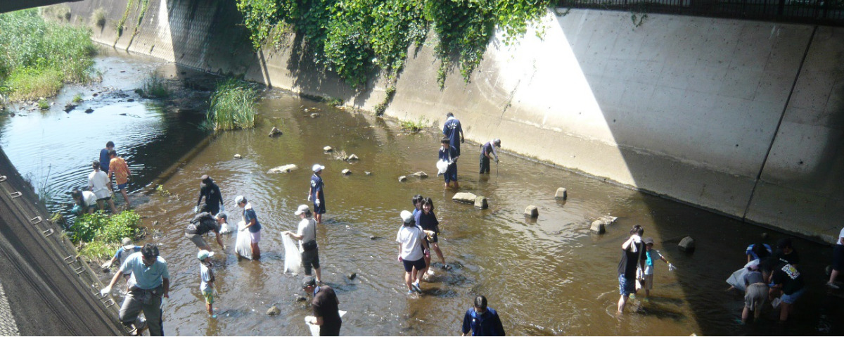 近隣住民と小中学生などによる阿久和川の清掃が7月7日に行われた。主催は名瀬第一町内会(新井敏行会長)。毎年7月に、河川愛護月間に合わせて開催されているもの。