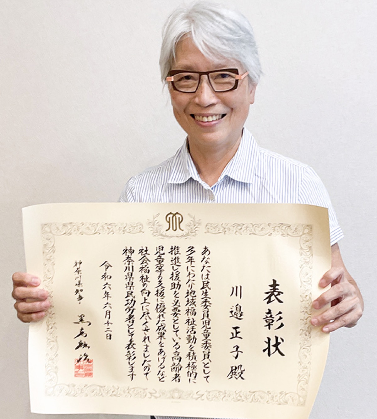 県民功労者表彰の受賞者がこのほど発表され、戸塚区民生委員児童委員協議会の会長を務める川邉正子さんが受賞した。