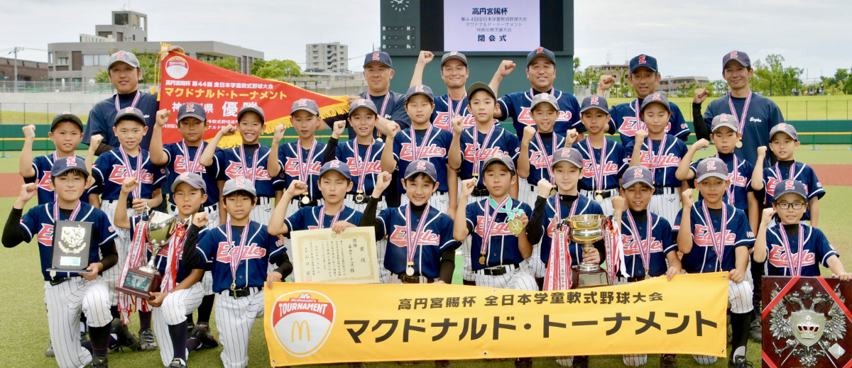 戸塚区の平戸イーグルス(中村大伸監督)が先ごろ、「全日本学童軟式野球大会」(マクドナルド・トーナメント)の神奈川県予選大会で優勝を飾り、8月15日から明治神宮野球場で開かれる全国大会へ出場する。全国に挑戦するのは2度目。