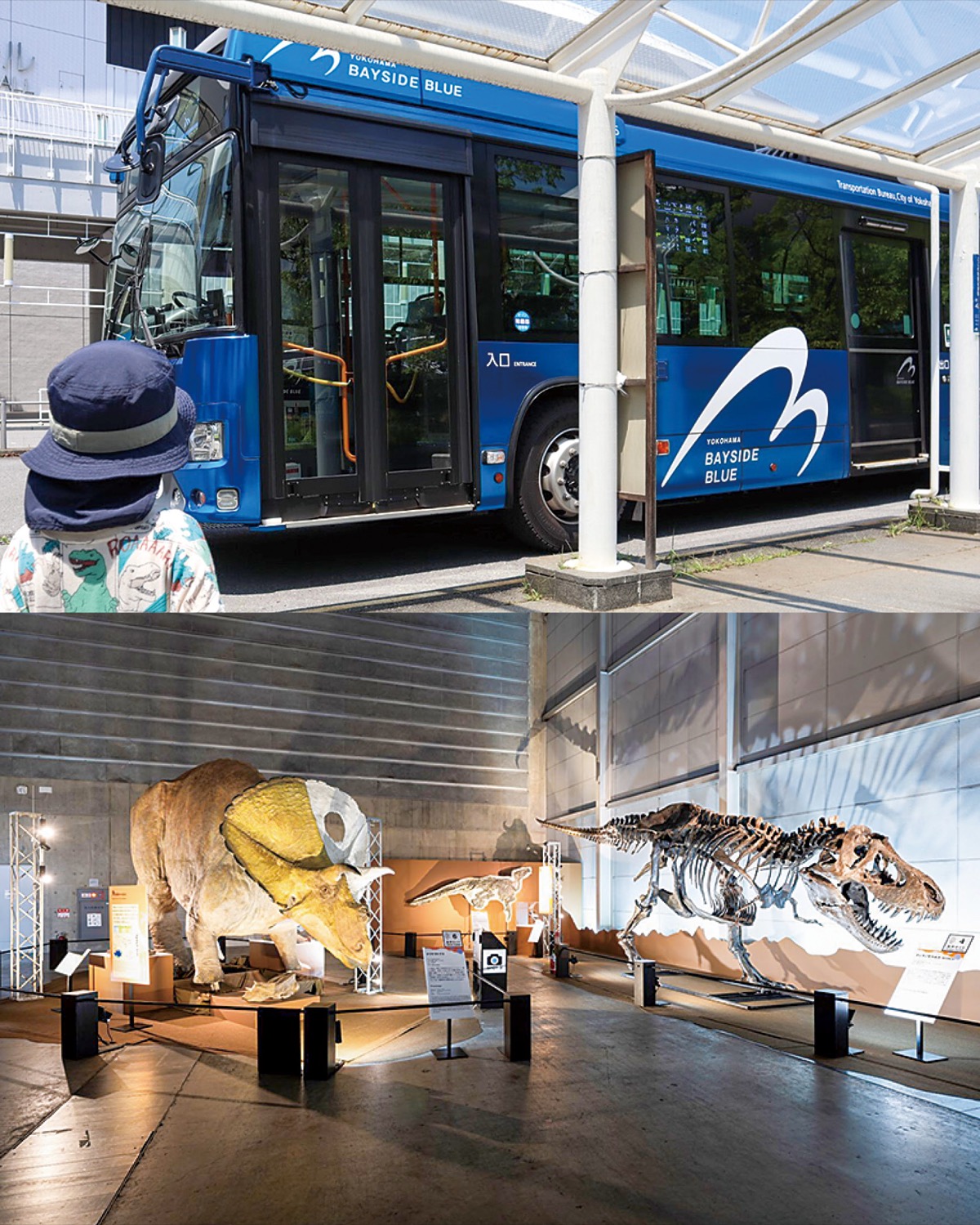 会場までの移動は、連節バス「ベイサイドブルー」が便利。横浜駅東口バスターミナルから約14分、「パシフィコ横浜」停留所で降りれば恐竜展会場は目の前だ。