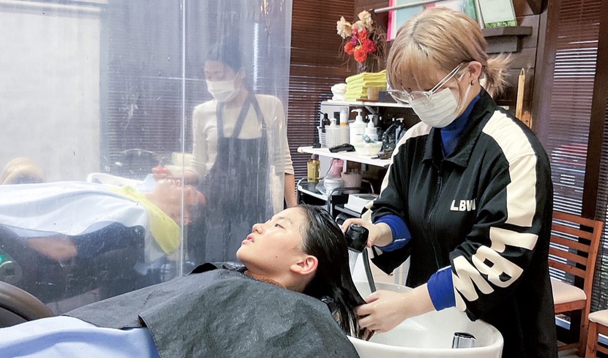 接客や掃除など基本的な仕事から、洗髪やカラー剤の調合、カットなど本格的な美容師の業務も学んだ。体験を経て雨宮さんは「仕事の忙しさにも楽しさにも気づけた。本当のスタッフのように仕事ができたのは、山崎さんが快く指導してくれたおかげ」と笑顔だった。