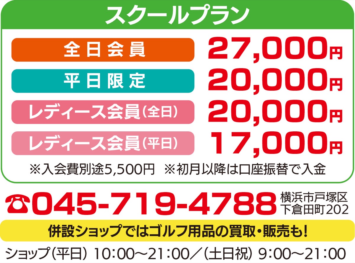 下倉田町のインドアゴルフスクール「ゴルフパートナー」。9月22日(日)、通常1人のプロを3人体制に強化したプレミアムレッスン会を開催する。予約は左記【電話】から。