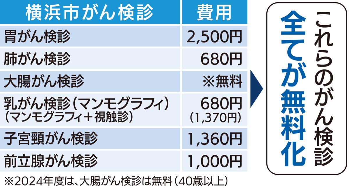 横浜市はこのほど、65歳の市民のがん検診を無料化し、9月26日から順次、指定医療機関で使える「無料クーポン券」の送付を開始した。同年代を境に受診率が下がっており、市は退職などで会社での受診機会がなくなることが原因の一つと分析。無料化を機に「がん検診を習慣づけてもらいたい」と話す。