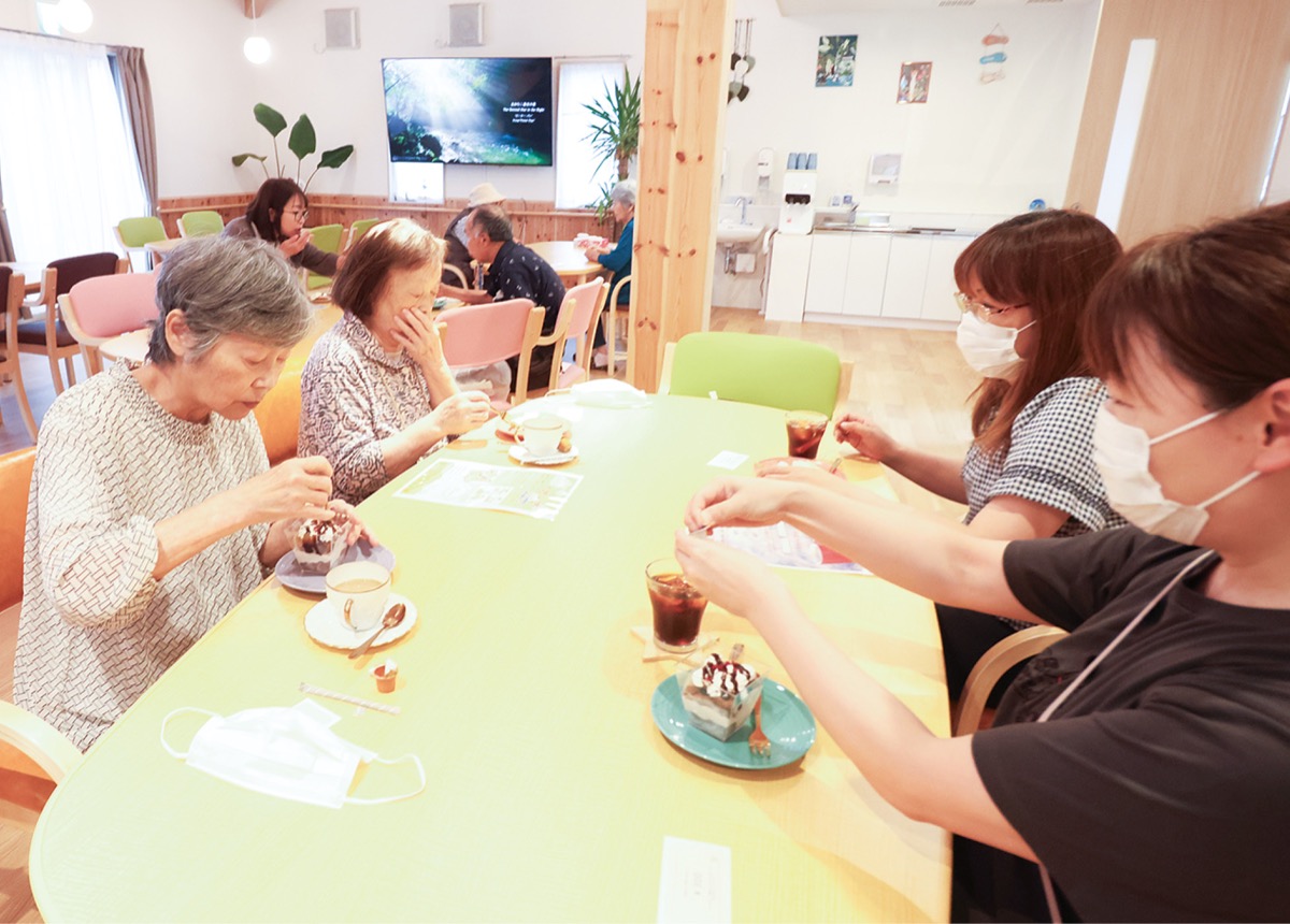 喫茶ヴィラでは手作りの焼き菓子やケーキとコーヒーのセットを300円で提供。施設統括本部長の山岸敬子さん=今号中面・人物風土記で紹介=は「地域に開かれた場所にできたら、この施設に住む人にも周辺の人にとってもよいのでは」とし、広く利用を呼びかけている。