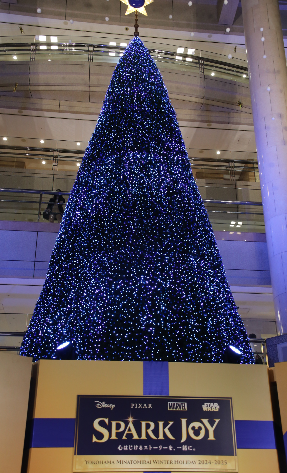 同日から始まったホリデーイベント「YOKOHAMA MINATOMIRAI WINTER HOLIDAY 2024-2025」では、ディズニー、ピクサー、マーベル、スター・ウォーズの4つの世界を音と光で表現したツリーが施設を彩る。