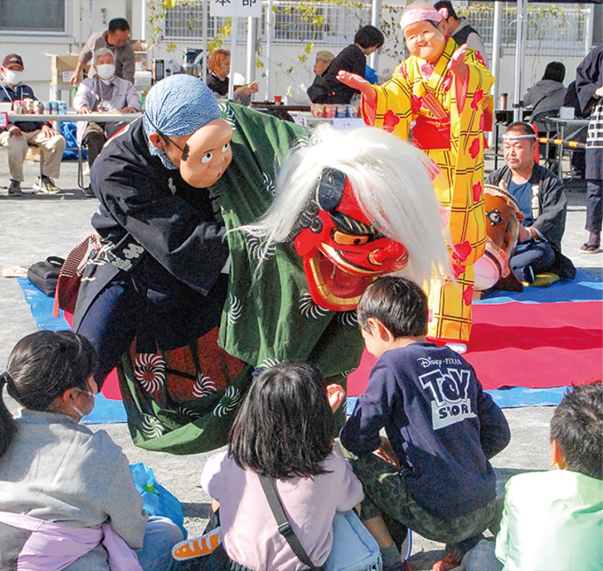 周年の祝いに舞踊と獅子舞の演舞=写真=などが披露されると、物珍しさに真剣に観覧する子どもの姿などが見られた。