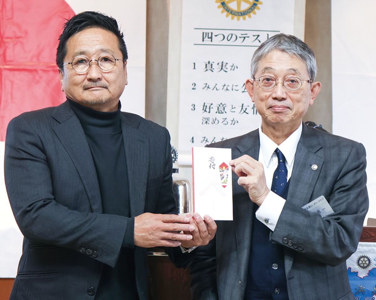 横浜泉ロータリークラブ(青木昌一会長)が12月6日、同クラブが例会場として定期的に使用している共働舎(中田西)に寄付金を贈った。