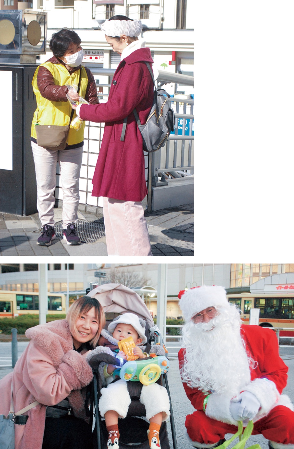 駅利用者や通行人には、啓発物品・チラシなどのほか、「ゆずりあい」の気持ちを込めて柚子も配られた。同署の永吉和弘署長は「年末に向けて事故増加が予想される。横断歩道上での事故が大変多いので、運転者だけでなく歩行者も気をつけて」と注意を促した。