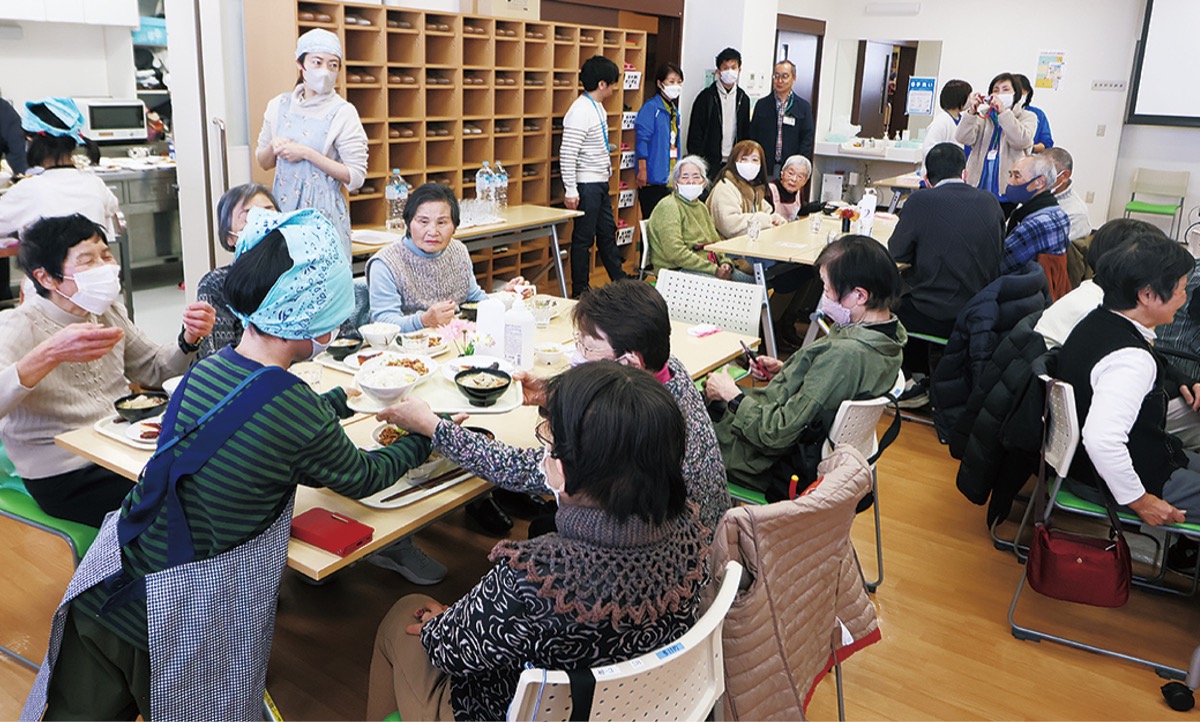 同所では昨年秋に多世代食堂「いずみ野キッチン」がスタート。民生委員をはじめ、幅広い世代がボランティアとして参加し、温かい食事を楽しめる場を提供している。
