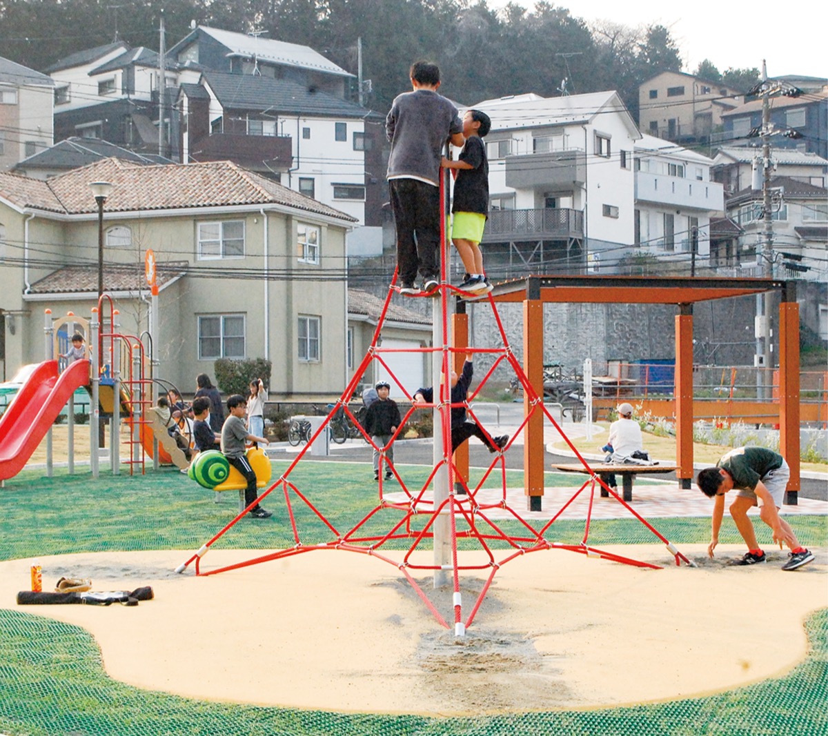 同園を知り、近年吉田町に引っ越してきたという女性は「小さい子供でも遊べるような遊具がありうれしい。砂場ではないので、汚れないのもありがたい」と話した。