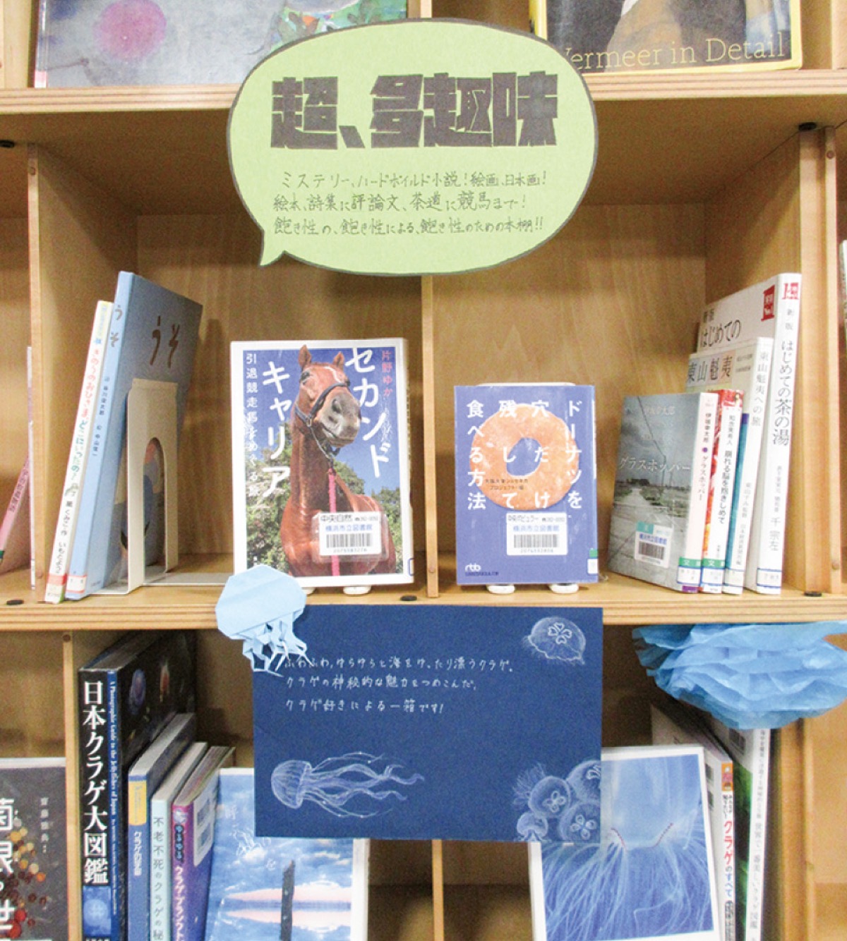 戸塚高校の図書委員会の生徒たちが、横浜市中央図書館の本棚の一部でお勧めの本を紹介する「ハマの高校生・先生の推し本!」の企画に参加し、20日まで同所地下1階で展示を行っている。