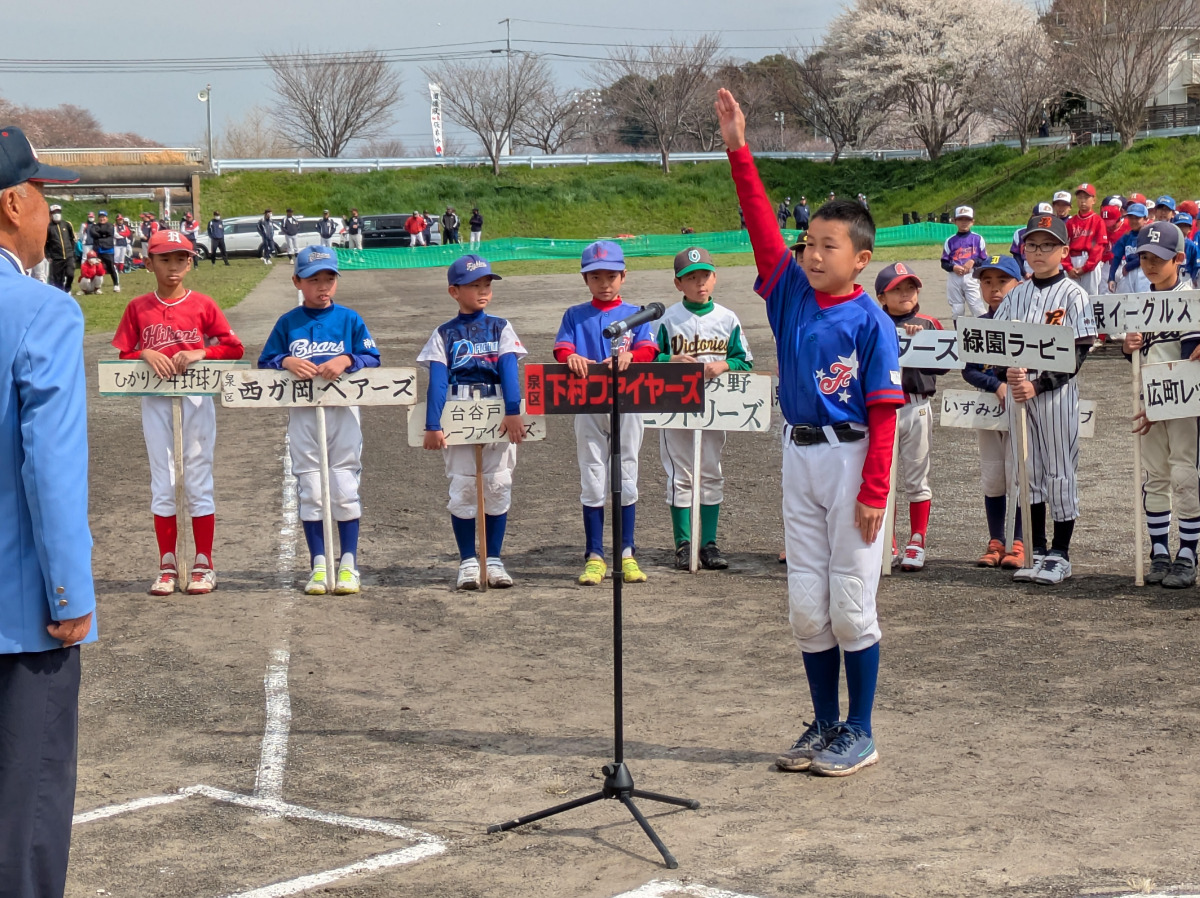 泉区学童野球連盟が3月30日、和泉川第四遊水地グラウンドで今季大会の開会式を開いた。