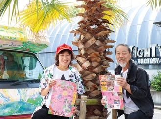 会場の目印になるのが、「バー&ファクトリーマイティー」(新橋町194)。地元で生まれ育った越水薫さん(66)が趣味で作ったガレージを元に、息子の麻糸(まいと)さんが作り上げた店舗だ。閑静な住宅街にあって異彩を放つアメリカンな佇まいだが、「こんなかっこいい場所を毎日眺めたい」と湯岡さん一家が7年ほど前に引っ越してきたという。