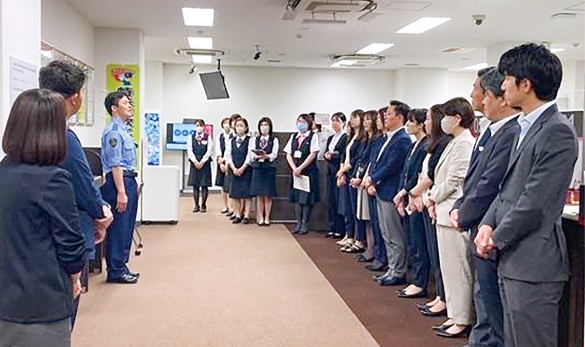 同支店の生方沙紀さんは「やはり警察の人がいてくれるとお客様にも危機感が伝わりやすい。今後も被害を防げるよう、できることを考えていきたい」と話した。