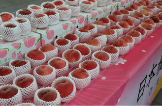 福島復興応援 桃や「ままどおる」が販売されるマルシェ