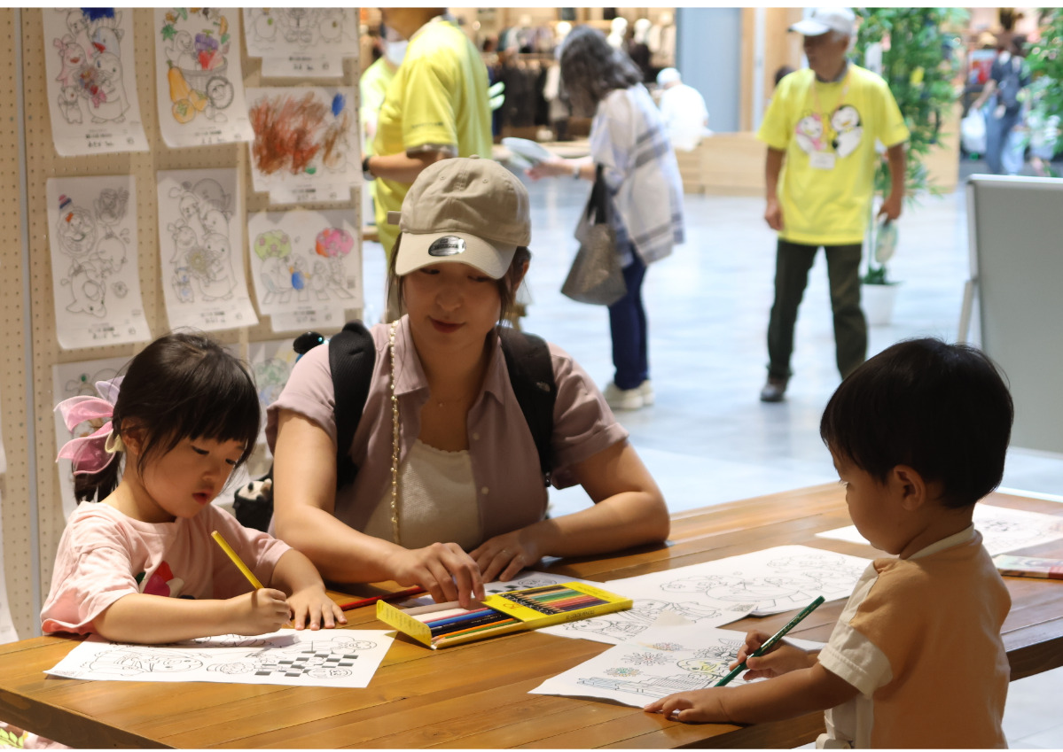 この取り組みは法務省が犯罪・非行防止や立ち直り支援のために提唱する全国的な運動。今回初めてソラトスでの開催となり、啓発キャラクターのぬりえコーナーでは親子が楽しみながら、関心を寄せていた。