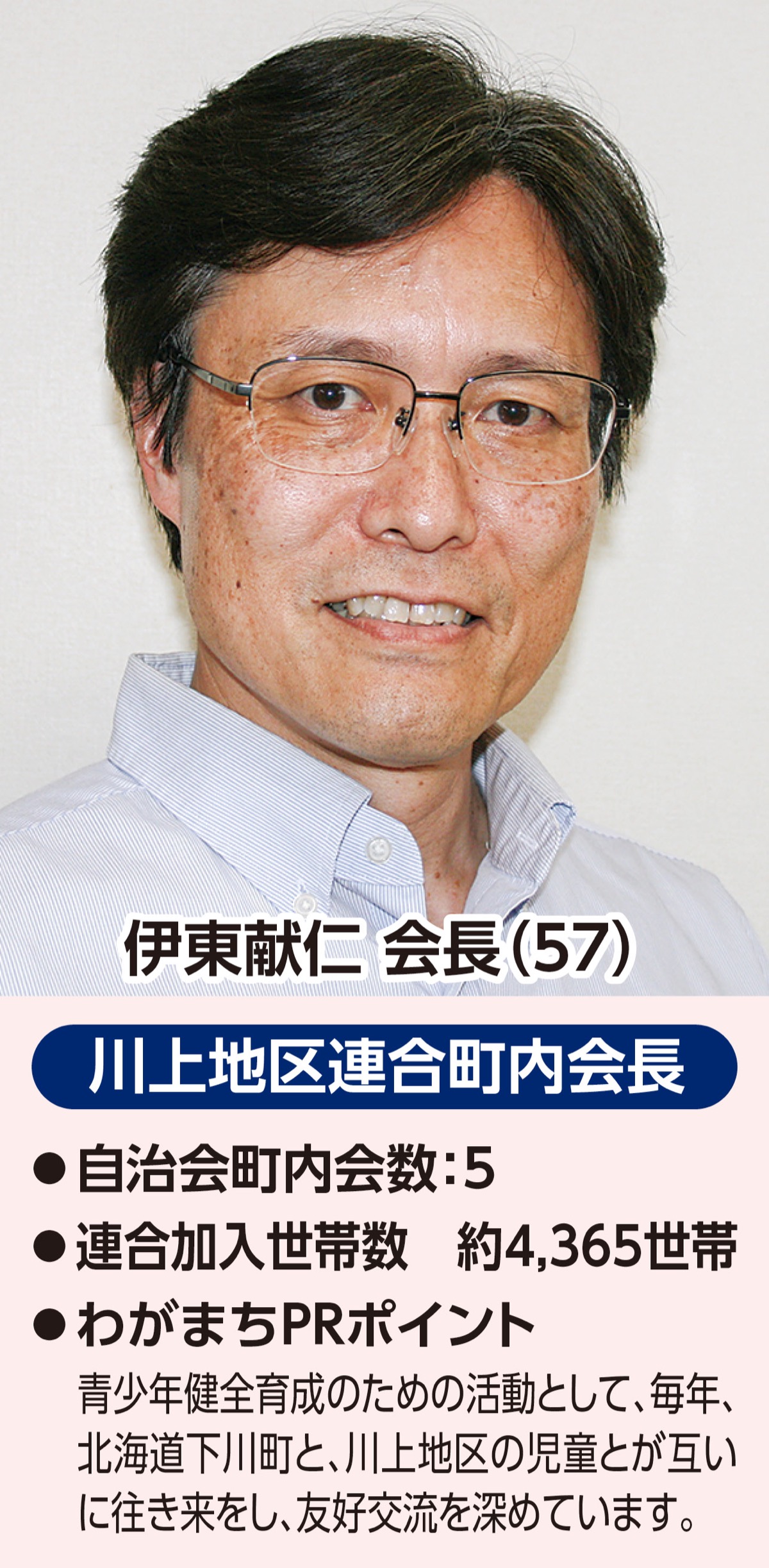 川上地区と北海道の下川町で締結された友好協定での活動がポイントの一つ。11月と1月に双方の児童が互いに往き来をし、交流を楽しむ。「下川町の児童さんは前田町と秋葉町の町内会館に寝泊まりする。こうした経験も大切」とほほ笑む。