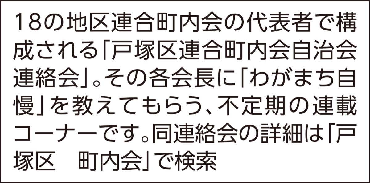 南区出身。金融関係の会社に勤めており、仕事の関係で下倉田へ来てから青少年指導員として地域活動を始めた。防災ライセンスを始め多数の資格を持つほか、趣味の写真や和紙ちぎり絵など、持ち前の器用さも地域に還元したい思いだ。「地域の人に支えられていることを忘れず、貢献していきたい」と思いを語る。