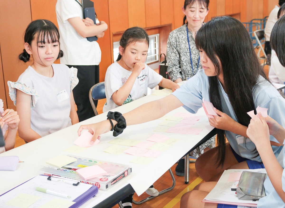 当日は各学校合同のグループに分かれて「いじめという単語から連想されること」について意見を出し合った。その上でいじめを防ぐための方法について話し合い、グループごとに発表。「口に出す前に、本当に言ってよいことかを考える」などの意見が出た。