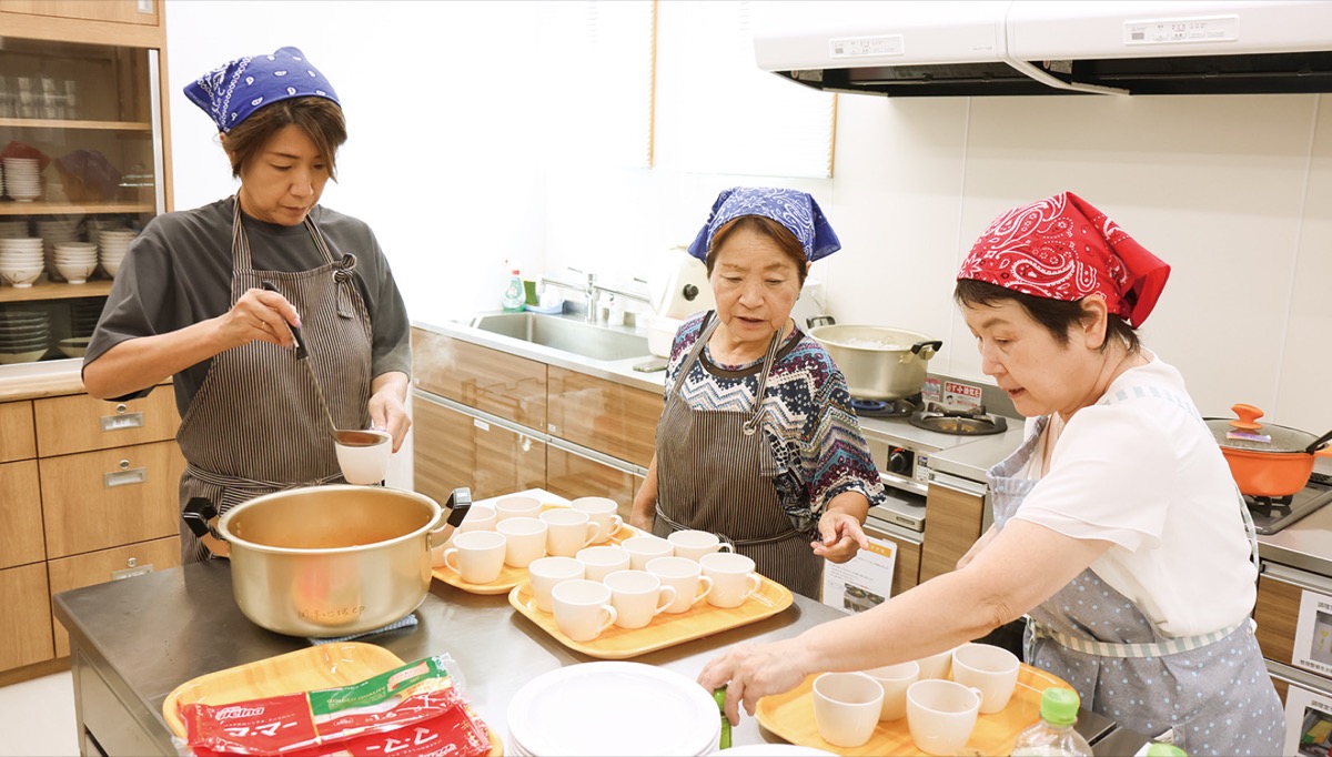 そんな中で今年は、同ケアプラザの紹介で中川連合町内会の女性部の協力を得られることに。地域食堂「5組ハピわくケアプラザレストラン」として、地域住民を対象にパスタやピザ、スープなどを各40食限定で販売するという。