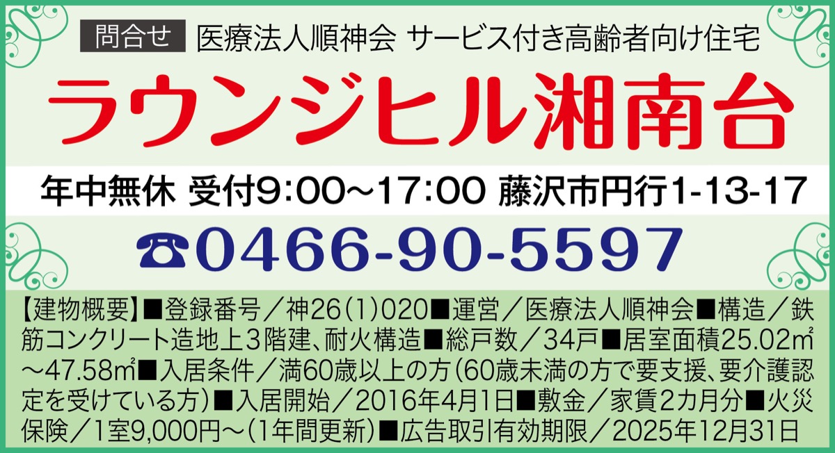 これまでの暮らしと同じように過ごせて、安心感がある――。医療法人順神会が運営するサービス付き高齢者向け住宅「ラウンジヒル湘南台」の入居者の声だ。60歳以上であれば、要介護度にかかわらず入居できる。