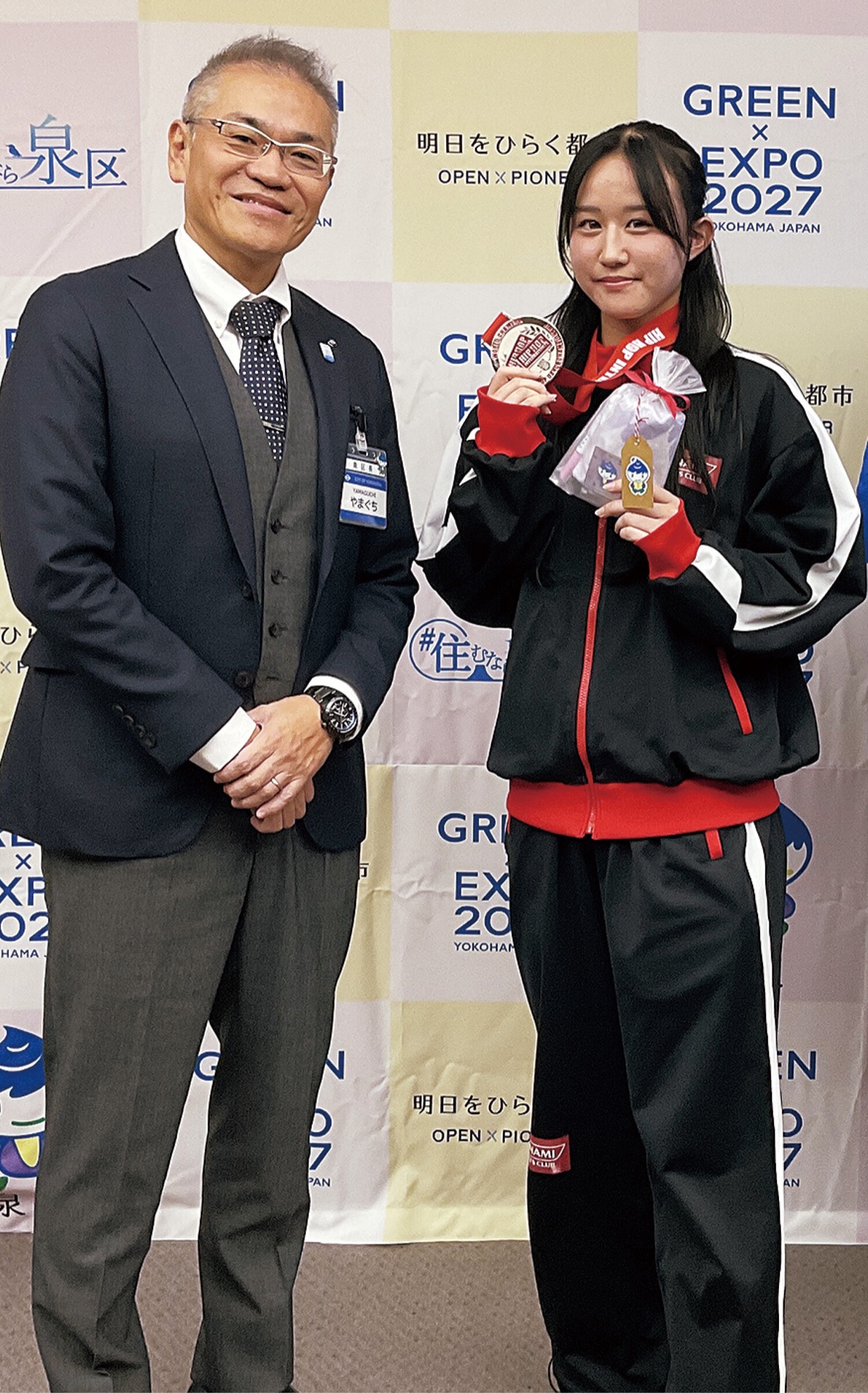石井さんは10月23日、両親とともに泉区役所を訪れ、山口賢区長に大会の結果を報告した。山口区長は「泉区民の方の活躍は本当にうれしい。これからも頑張ってください」とエールを送った。
