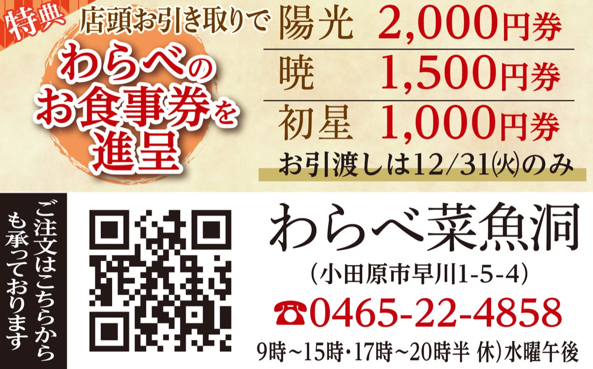 小田原漁港で連日行列の絶えない人気店「わらべ菜魚洞」。リピーターの熱い支持で毎年早々に完売する「手作りおせち」を今年も予約開始。