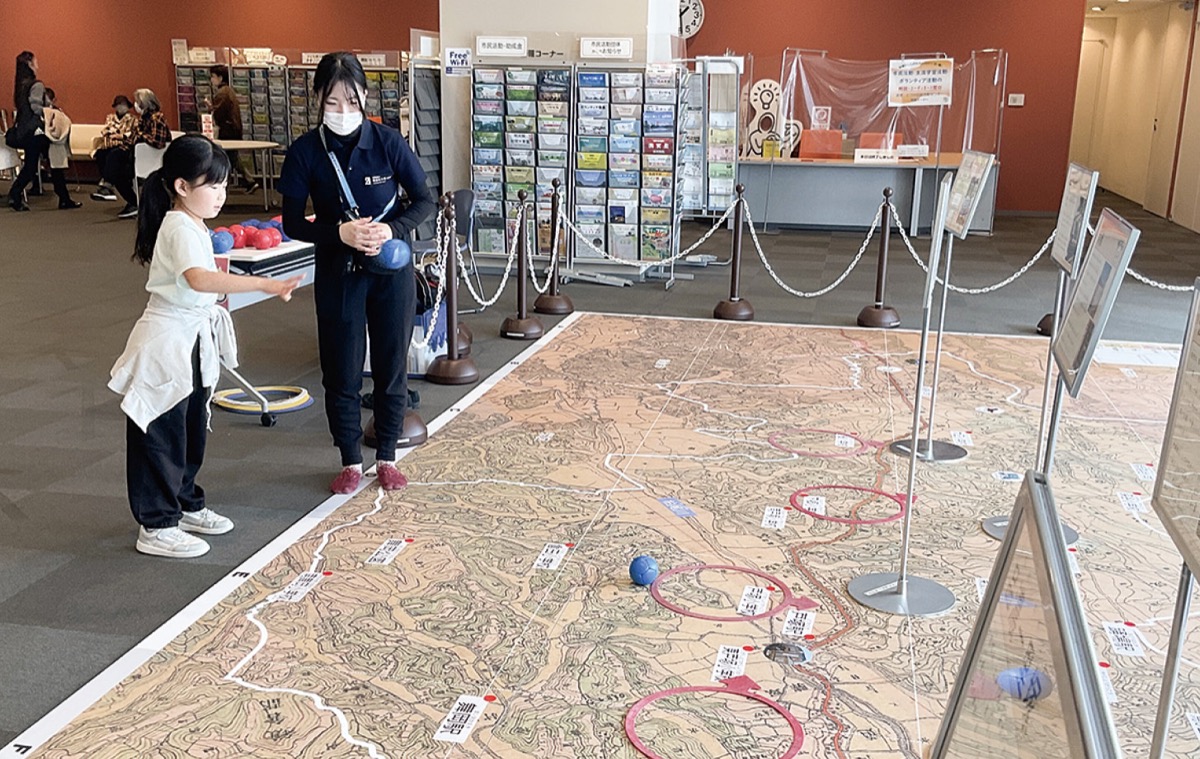 宿場町の歴史に関するパネルやジオラマが展示されたほか、戸塚の地図とボッチャを組み合わせたゲームや、浮世絵の缶バッジ作りには子どもたちが集まり、にぎわいを見せた。