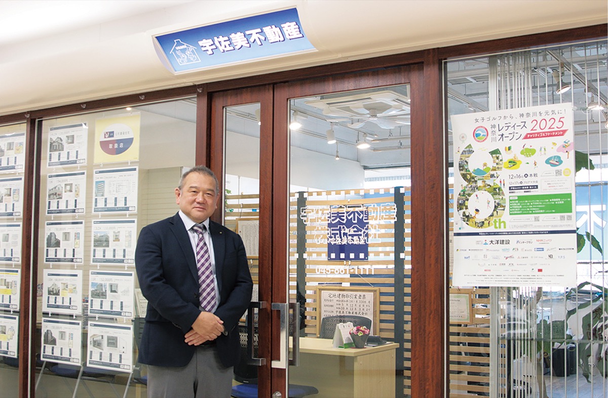 戸塚駅目の前、ラピス戸塚IIIにある「宇佐美不動産」は戸塚で営業して55年。初代代表の父から同社を受け継いだ宇佐美裕助代表は戸塚の魅力について「各商店街が力を合わせて町を盛り上げるような地域のつながりを感じます」と語る。