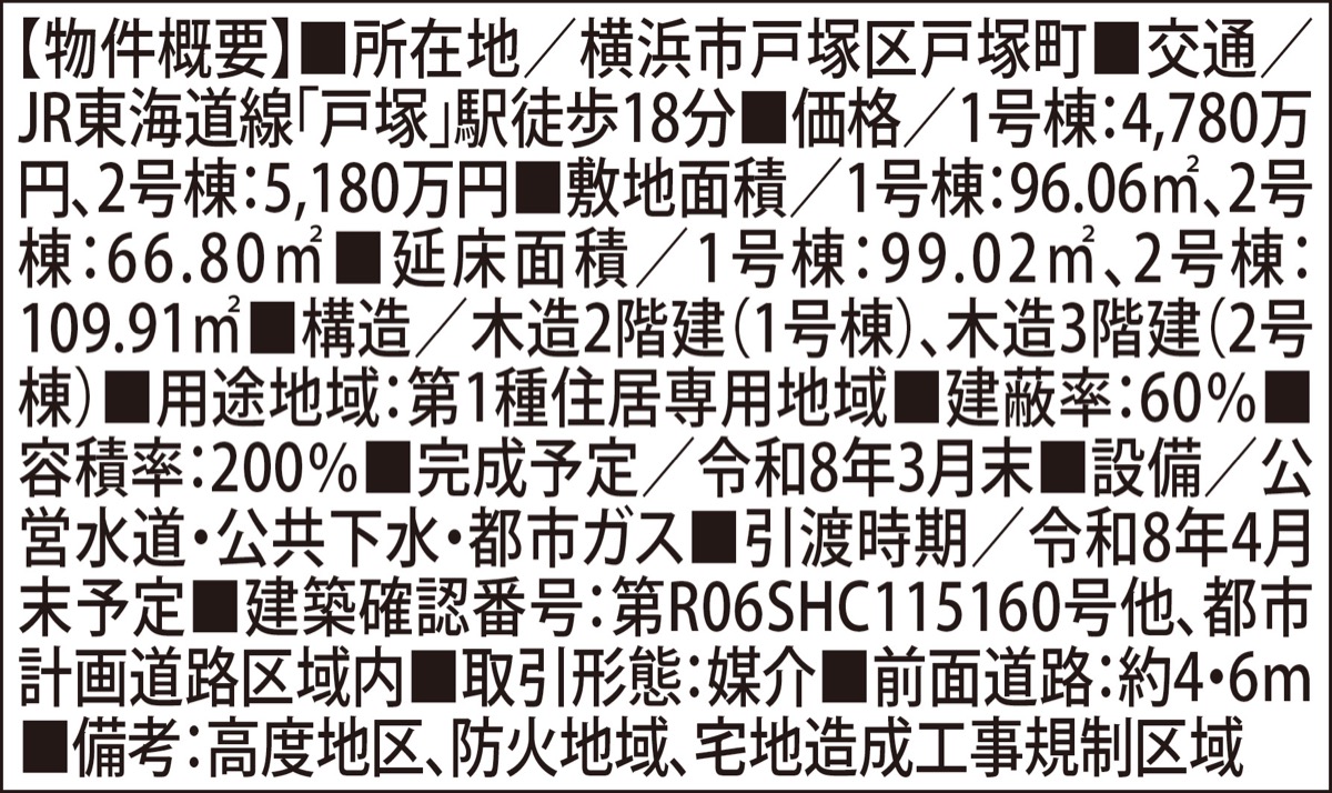 戸塚町に2棟の新築分譲
