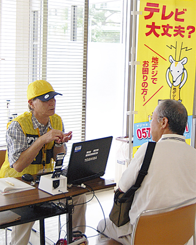 また、来場や電話での相談が困難な高齢者の独居世帯などもあることから、現在、地デジボランティアが区内をまわり、アンテナやケーブルの設置状況を確認、移行が済んでいないと思われる世帯には訪問して声かけを行っている。