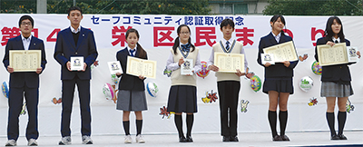 今年度は全国大会以上に出場した3人・2団体に特別賞を、それ以外の7人・2団体に奨励賞を授与した。特別賞受賞者は11月2日に行われた栄区民まつりの中で表彰され、尾仲区長が賞状と盾を手渡した。奨励賞受賞者の各校にも賞状が届けられた。