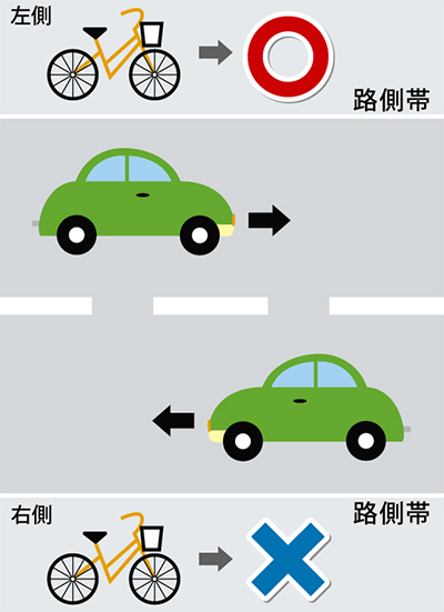 今回の改正は自転車同士の衝突事故の減少などを目的に行ったもの。これまでの道路交通法では、自転車が左右どちらの路側帯を通行するかは定められていなかった。