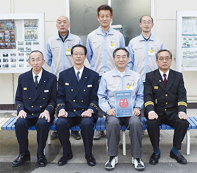 小菅ケ谷の(株)信光社(米澤勝之社長=写真前列右から2番目)は2月18日、同社で消防団協力事業所表示証を交付された。