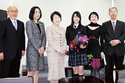 第42回ローザンヌ国際バレエコンクールで2位に入賞した、緑区・横浜翠陵高校1年生の前田紗江さん(16)=青葉区在住、次号「人物風土記」で紹介=が2月24日、市庁舎を訪問。林文子市長に受賞を報告した。